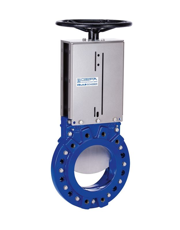 High pressure knife gate valve up to 40 bar operating pressure, e.g. for dewatered sewage sludges or biomass.