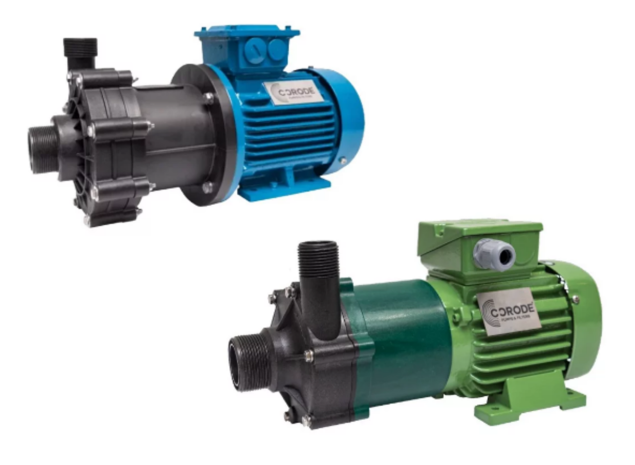 Die magnetgekuppelten Kreiselpumpen bieten eine sichere Möglichkeit, chemische und korrosive Flüssigkeiten durch ein geschlossenes Pumpengehäuse ohne Wellenabdichtung zu fördern. Die Übertragung des Drehmoments vom Antrieb erfolgt durch eine magnetische Kupplung auf einen internen Magneten der das Laufrad antreibt. Die Pumpengehäuse sind komplett aus PP oder PVDF aufgebaut. Diese hat den großen Vorteil, dass das Fördermedium nicht mit Metall in Berührung kommt und so der Pumpenkopf vollständig korrosionsbeständig ist.