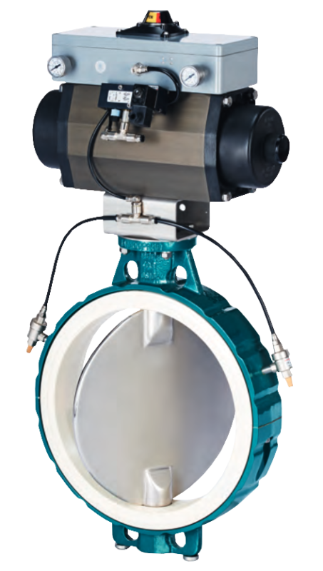 Durch die pneumatische Druckbeaufschlagung des Sitzringes in Stellung ZU schaltet die Klappe reibungsfrei ohne Vorspannung zwischen Sitz und Klappenscheibe. Verschleißerscheinungen werden somit vermieden.