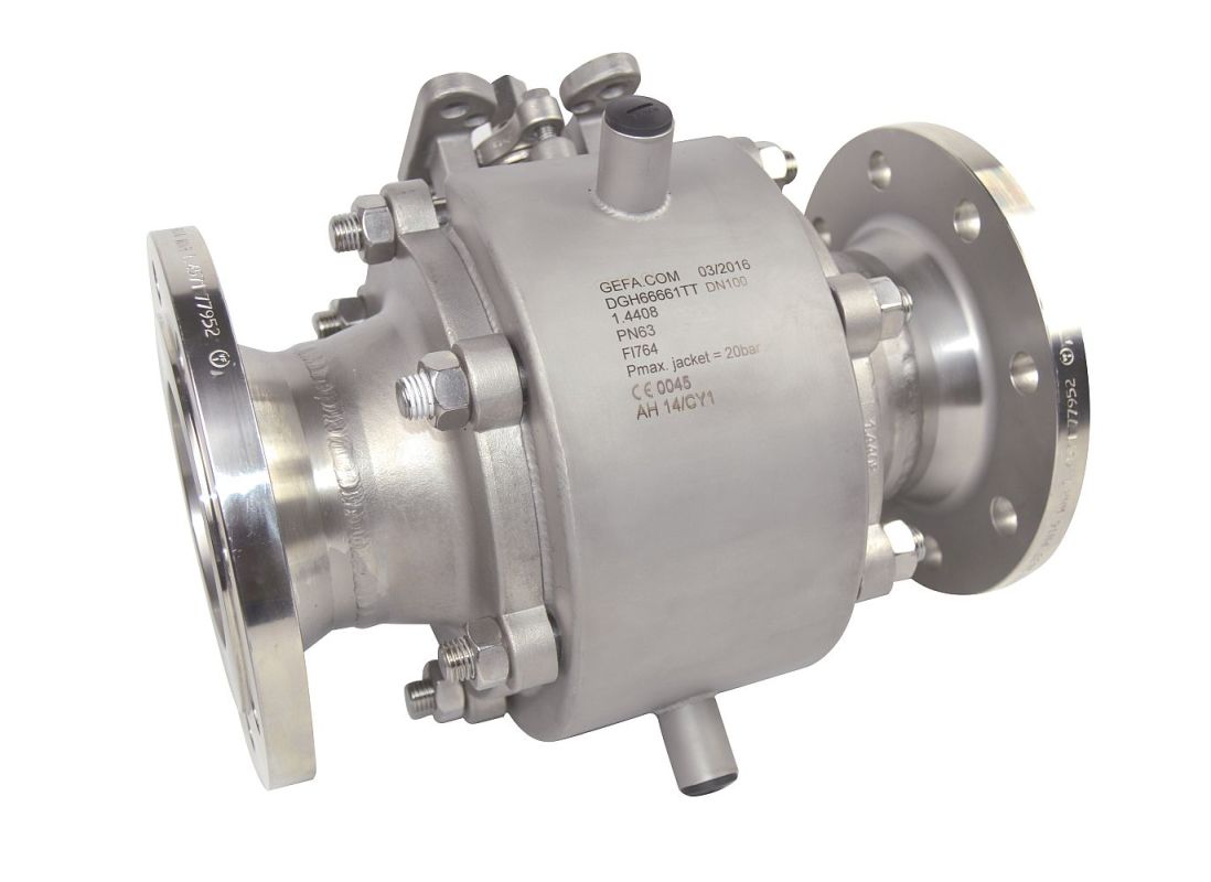 Kugelhahn mit Heizkammermantel für alle gängigen Heizmedien (Druck pmax = 20bar), dreiteiliges Gehäuse, Druckstufe nennweitenabhängig bis PN 125, Kugel schwimmend gelagert, vakuumdicht.
