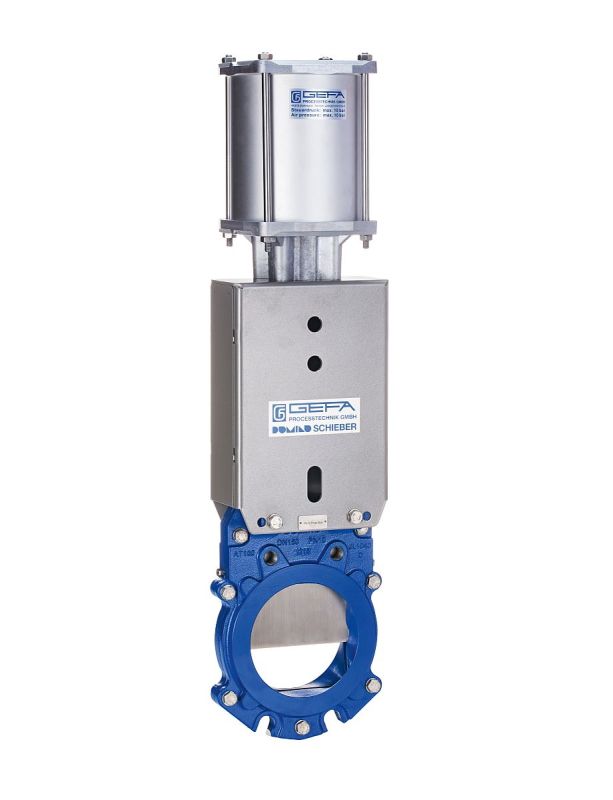 Zweiteiliges Gehäuse, beidseitig dichtend, metallisch geführte Schieberplatte im Schließzustand arretiert, selbstnachstellende COMPACT-Querdichtung nach außen ohne Stopfbuchse – wartungsfrei, selbstreinigende Spülecken mit Schneidkante im Bodenbereich.